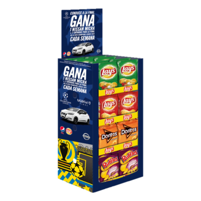 Desde la mitad de marzo, estaremos inmersos en la promoción de la Uefa Champions League junto a Pepsi. Por la compra un pack de Lay’s Sal, Lay’s Campesina, Ruffles Jamón y Doritos Tex (en sus formatos Super Precio y Bolsa Pequeña) pueden conseguir un regalo directo conjunto: ¡Nissan Micra + 2 entradas para la Final de la Champions que se celebra en Madrid!