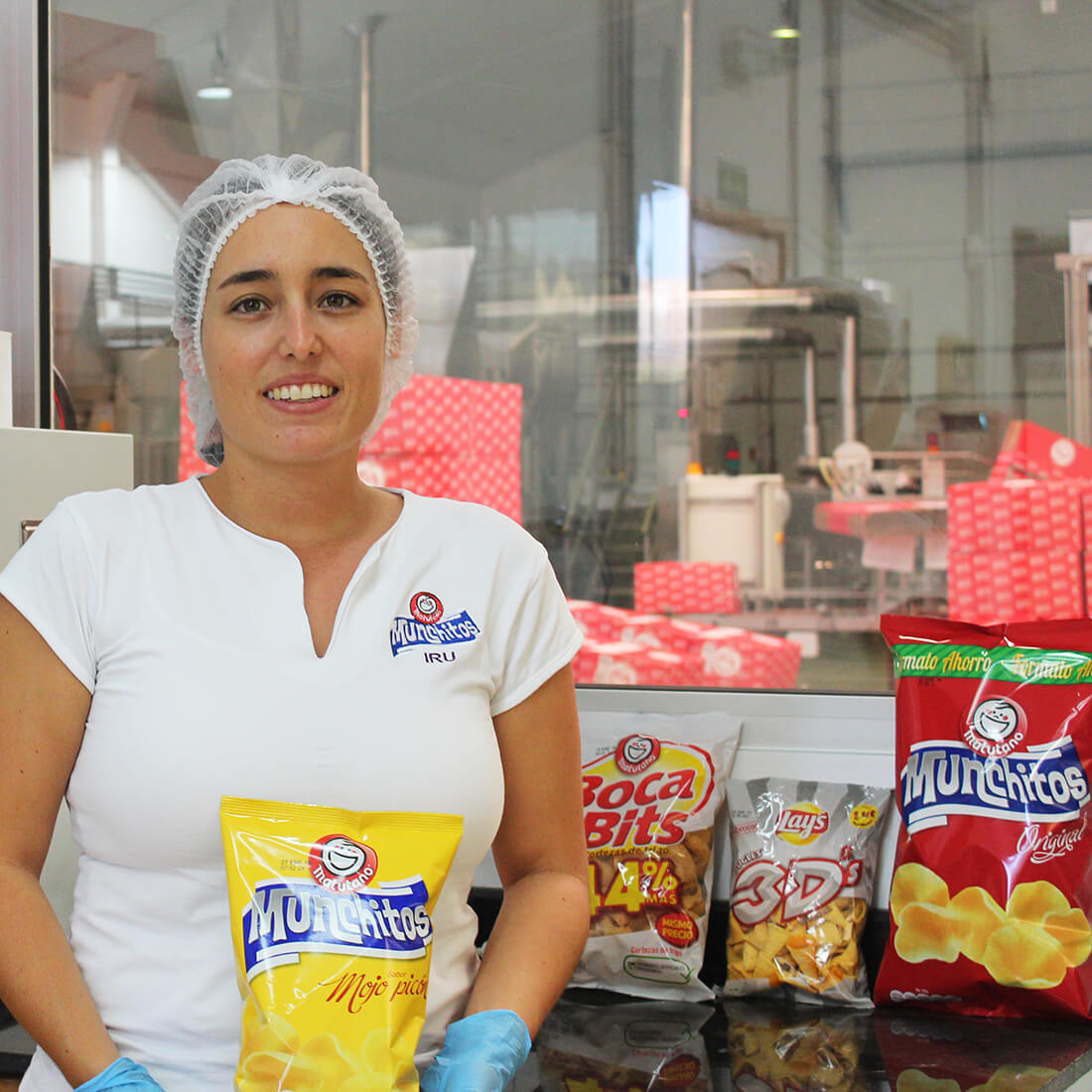 Iru Hernández desempeña un papel clave dentro de Aperitivos Snack. A partir de su trabajo se inicia una gran cadena de actividades hasta que los productos que fabricamos llegan a los establecimientos de toda Canarias y generan emociones en los consumidores.