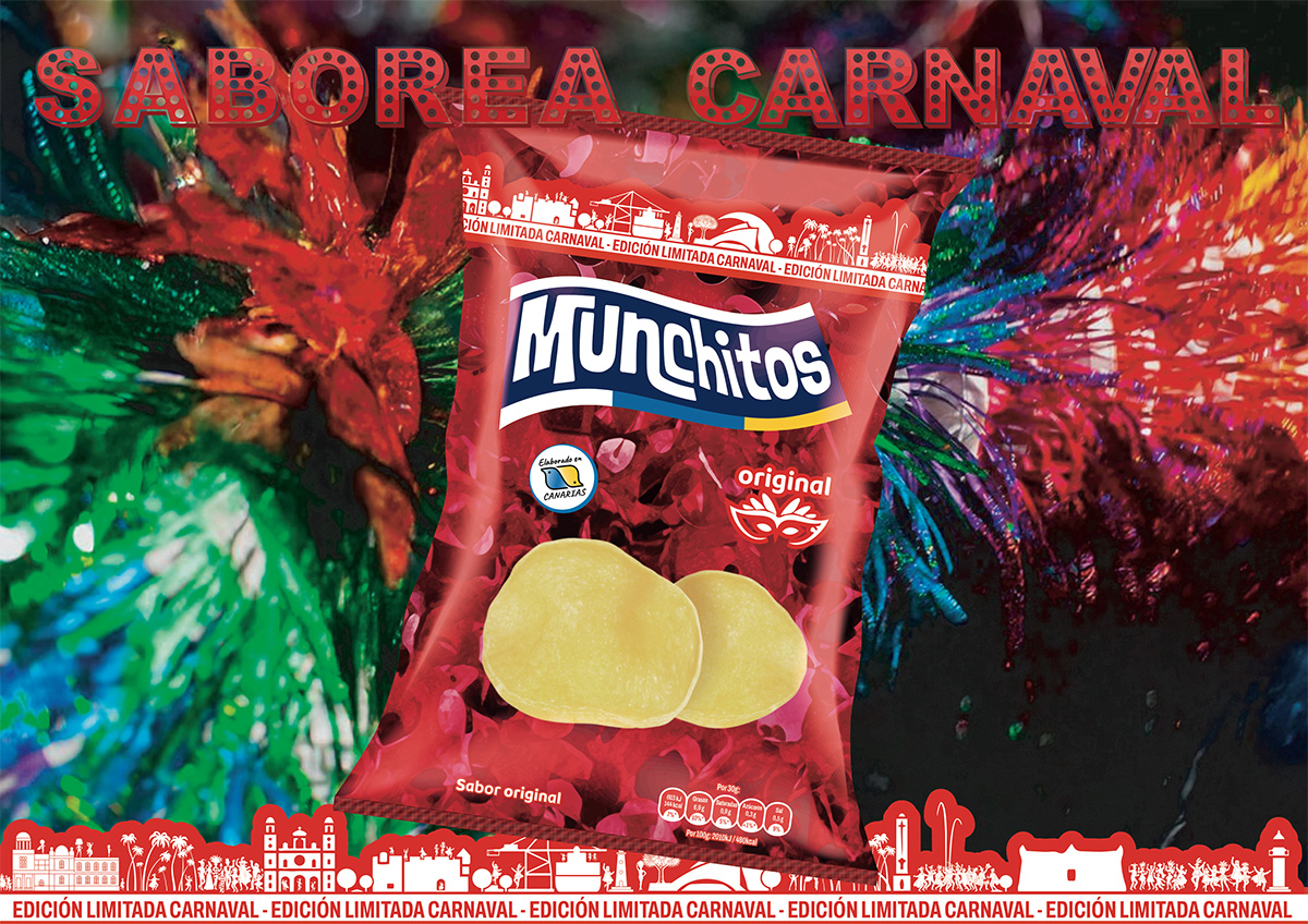 En Aperitivos Snack estamos orgullosos de anunciar el lanzamiento del nuevo diseño especial de Munchitos Sabor Original, creado para celebrar como se merece nuestro Carnaval, una de las fiestas más emblemáticas y queridas de nuestras islas.