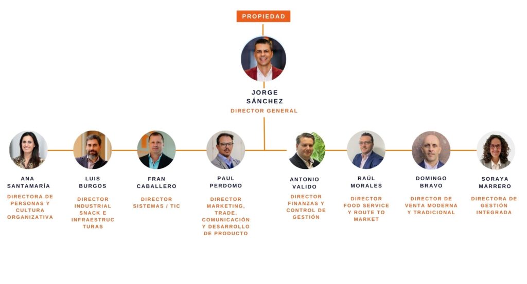 Como director General de Aperitivos Snack, vela por la correcta gestión de toda la cadena de valor de la compañía y lidera la ejecución de la estrategia corporativa. Coordina los objetivos globales, impulsa la visión a largo plazo y asegura que la misión, valores y cultura de la empresa se transmitan y vivan en todos los equipos. Asimismo, supervisa la toma de decisiones clave y promueve un crecimiento sostenible, innovador y alineado con el propósito de la organización.